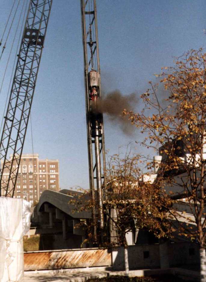 The first is shown above: the Link-Belt diesel. The Germans developed the diesel hammer during the 1920’s and 1930’s, using it themselves during World War II. At the end of the conflict the US seized the rights and information to the technology and it was developed into the first US manufactured diesel hammer by the Syntron concern; later it was manufactured by the Link-Belt crane manufacturer and after that by International Construction Equipment. (Vulcan would have done well to imitate it, as it proved with the IC-65 hammer.)