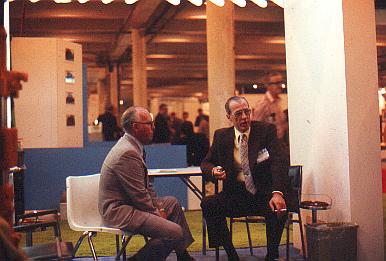 Thirty years later it became a very large homeless shelter in the wake of Hurricane Katrina.Vulcan employees Ed Kersting (left) and John Lerch at the 1979 OTC. Kersting, a distinguished civil engineer in his own right, made up the Houston office with Pem Warrington from 1978 until 1980. John Lerch was a design engineer on the 5150 and 6300 hammers. Most all Vulcan booths featured both the “Porthole” and “V-man” logos, along with the transparency from McDermott’s DB-23 in the centre.Another slow OTC. Offshore Sales Manager Herman Hasemkampf tells one more classic oilfield story to Executive Vice President Pem Warrington while wating for a customer to show up. In the 1980’s that meant a lot of stories.
