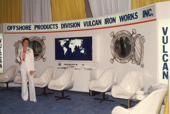 One of the industry events that Vulcan participated in over the years was the Offshore Technology Conference, usually held the first full week in May at the Astrocomplex in Houston, Texas. In a real sense OTC is more than a trade show; it’s a cultural event for the oilfield, which has survived boom and bust cycles since oil was first discovered. Vulcan’s participation — which nearly dates to the beginning of the conference in 1969 — mirrors that and shows Vulcan as a real participant in both the best and worst of times in the oil industry.