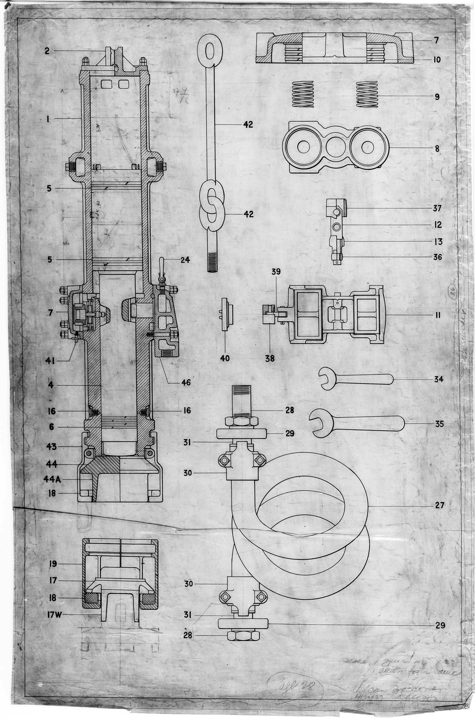 The California series hammers were developed by James N. Warrington. His ill health forced him to leave Chicago and live in Los Angeles, California. It was there in 1911 that he developed the “California G” hammer (U.S. Patents 1,019,386 and 1,020,467.) It was a major departure from the rest of the Vulcan line in that it was a closed hammer and provided downward assist for the ram. It also used the steam expansively (“compound acting”), something no production Vulcan hammer did before or since (although the single-compound hammer did on an experimental basis.)