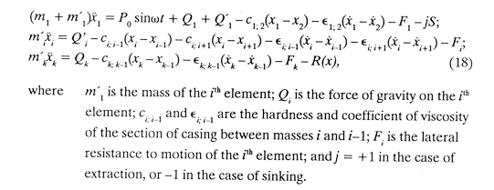 The differential equation for the movement of the casing, corresponding to the computational diagram in Fig. 7, has the form: