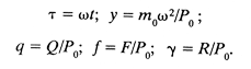 Fig. 6 shows the area in which the mode being studied exists for various values of parameters q, f, and γ. Analysis of the graph in Fig. 6 shows that the area in which the mode being studied exists is fairly broad when dimensionless frontal ground resistances are relatively large; as γ diminishes, the area in which the mode exists decreases, thus placing corresponding limitations on the selection of parameters for vibrational sinking machines.