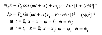 The rotational movement may cease during the time interval from t3 to t4 (at t’4). In this case, comparison of the moment of torque Mt = Po sin (ωt’4 + α) r1 and the moment of resistance Mr = {Fr + [mog + Po cos (ωt’4 + α)]f1r1} defines stoppage |Mt| < |Mr| or instantaneous stoppage |Mt| > |Mr|.