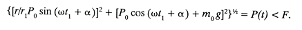 Stoppage of the rotational oscillations ends at |Mt| = |Mr| (t = t5). When t5 < t4, the motion of the system is described by equation (23) until t = t4. In the case where t5 ≥ t4, the next cycle under observation begins at φ0 = 0 and the phase angle α is defined by equation (21) for P(t) = F and t1 = 0.