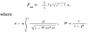 The friction pulse that acts on the element along the axis of velocity vs over time dt is equal to Fdt, while the friction pulse that acts along the vertical axis over time dt is equal to F vo/vs dt. The corresponding friction pulse over the entire period of the oscillation is F vo ∫0T dt/vs. On the other hand, this same pulse can be written as the product of the mean force of friction over a period Frot acting along the vertical axis for that period, i.e., as Frot T, whence