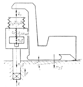 In order to assess the effect of the rigidity of the driving cables and the mass of the pile-driving apparatus on the driving ability of the impact-vibration hammer, it is necessary to consider the calculation scheme depicted in Figure 60.