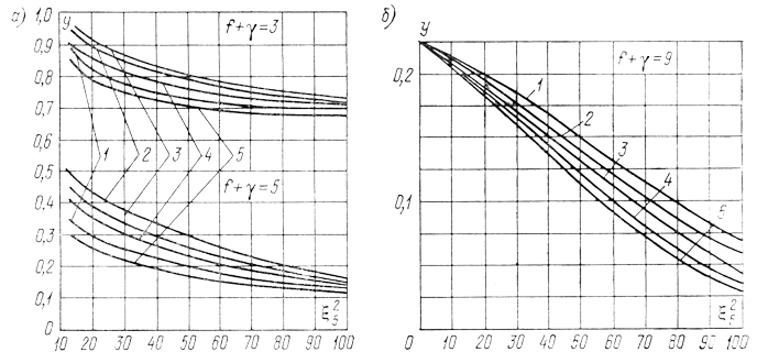 The calculations by the method presented above were performed on a computer. The results of the calculations are presented in the form of the graphs of Figure 61 with the following values of the parameters: sin α = 0.5, ξ1 = 0.5, β = 1.0, and δ = 0.75.