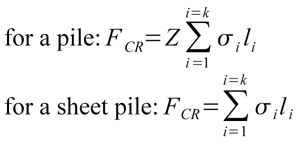 1. The resistance of the soil is determined. The calculated value FCR of the critical separation resistance at a given maximum sinking depth (kN) is determined on the basis of the original data characterizing the soil conditions: