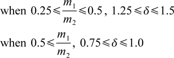 The δ value is selected as a function of the ratio of vibrator mass m1 and the mass of the driven shell m2;