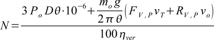 where D is the diameter of the support of the eccentric shaft, in mm; ηver is the coefficient that takes into account the losses in transfer from the engine to the eccentric shafts.