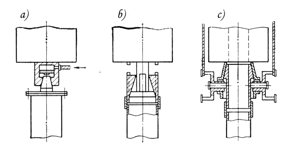 The oil reservoir of the hydraulic drive can be mounted directly on the vibration machine, or can also be separate, connected to the vibrating machine by hoses. A classification of the heads used in pile driving and drilling vibration technology is given in Figure 51 and examples of the structural designs of heads of various types and different purposes are given in Figures 52-54.