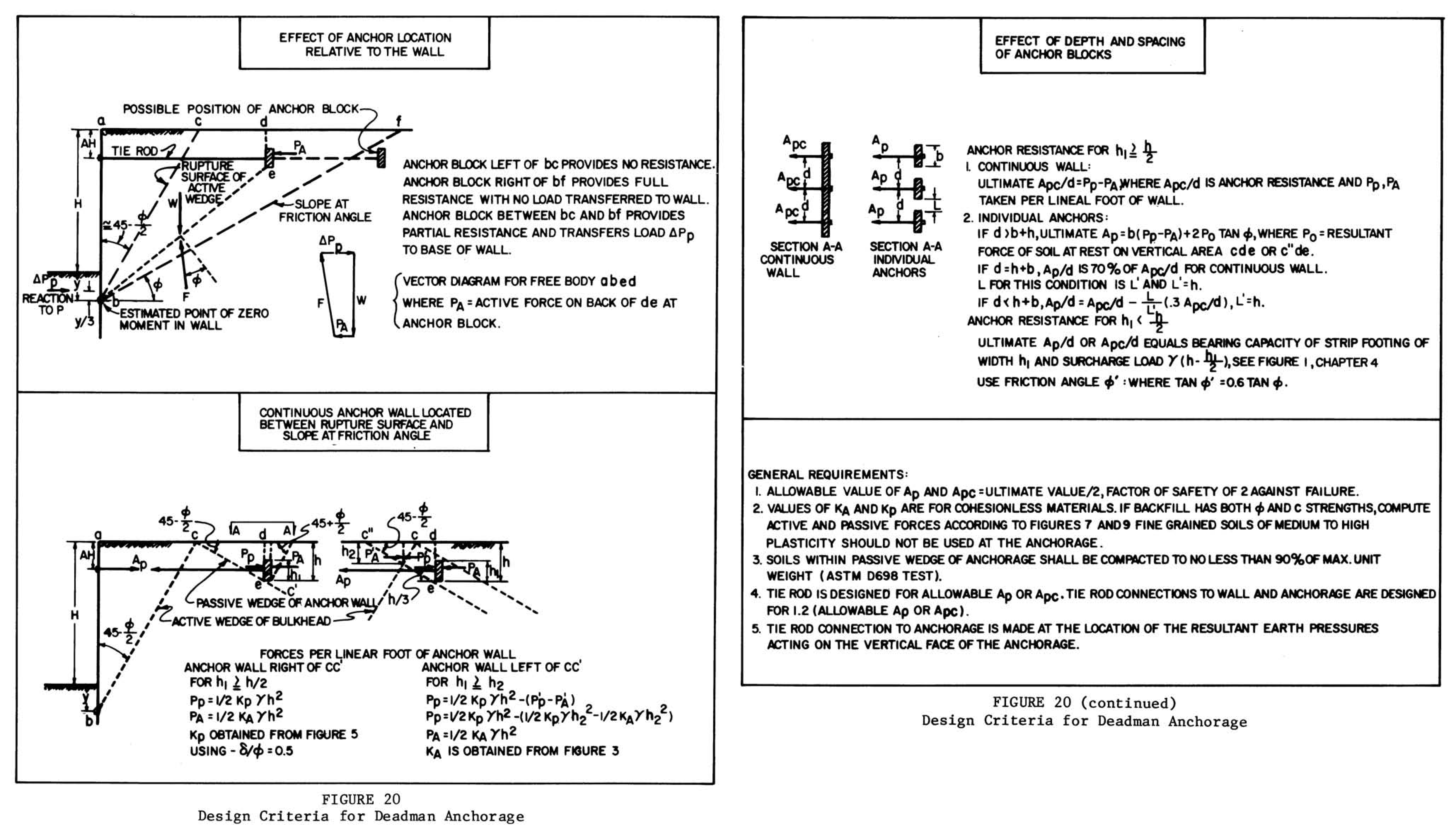 If one wants to consider the actual anchorage stiffness, it is necessary to determine the length, the cross-sectional area and the material to establish the stiffness, maximum stress and force, and the deflection at which plastic yielding takes place. If this is too much, a very stiff anchor is necessary; a very flexible anchor will render the calculations nearly useless. We have not included consideration of the flexibility of the soil bearing against the deadman; this further complicates the anchor input.