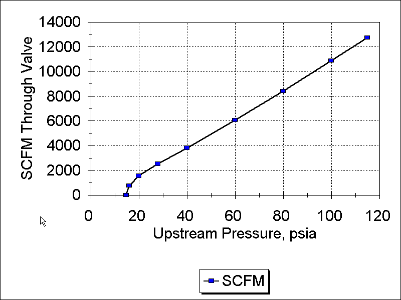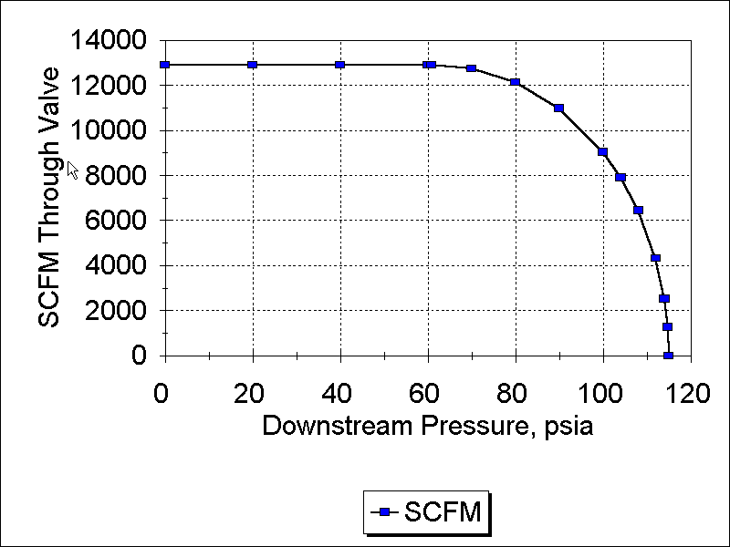Considering the intake case, the plot of downstream pressure vs. SCFM is shown below.
