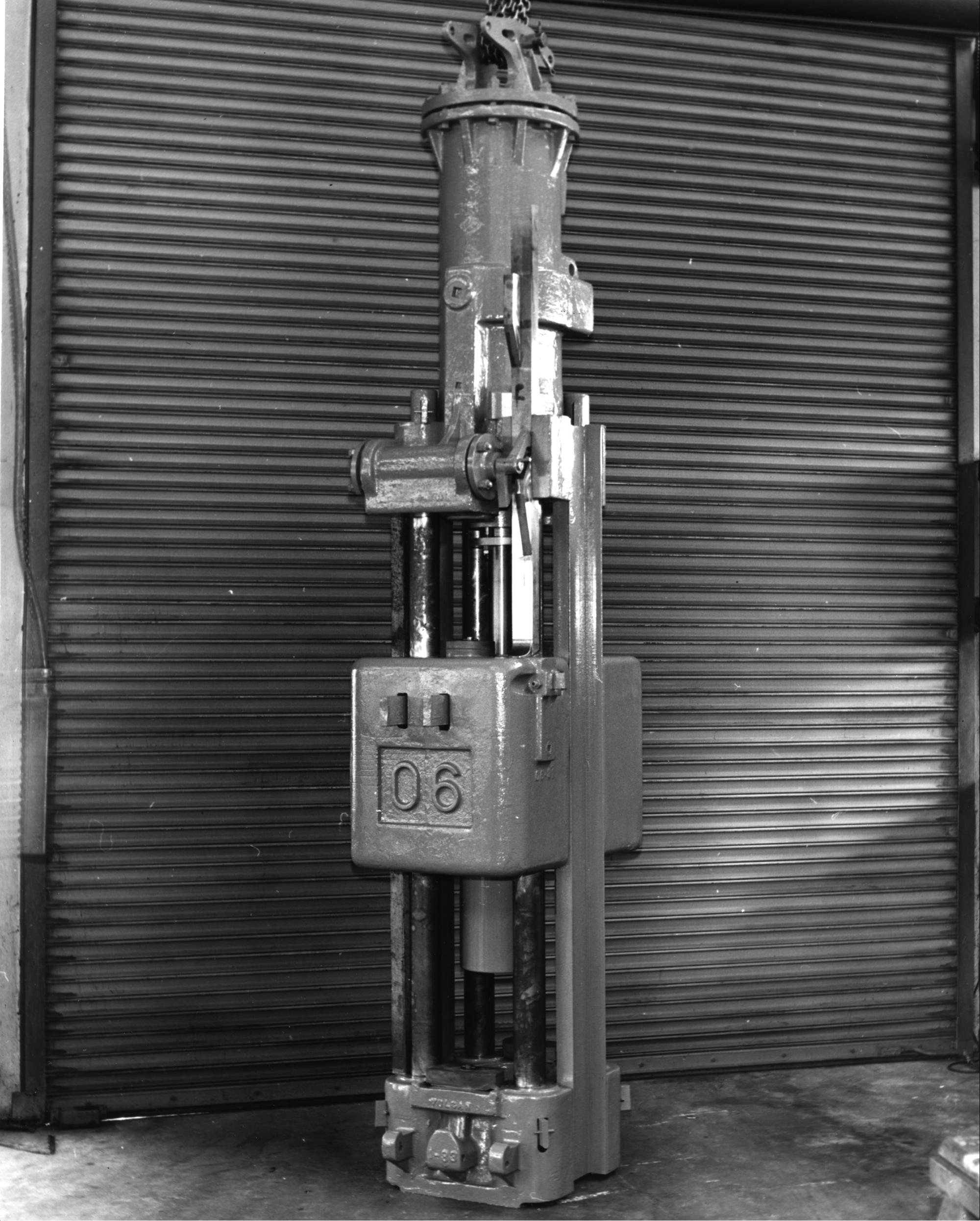 In the late 1970’s Vulcan made an important change to the 06. The original 06 used a steel ram which was deeper (fore and aft) than the #1’s cast-iron ram. The revised 06 used a taller, cast iron ram with the same depth as the #1. This is important when ordering parts. The taller configuration was carried over to the 5′ stroke Vulcan 506.