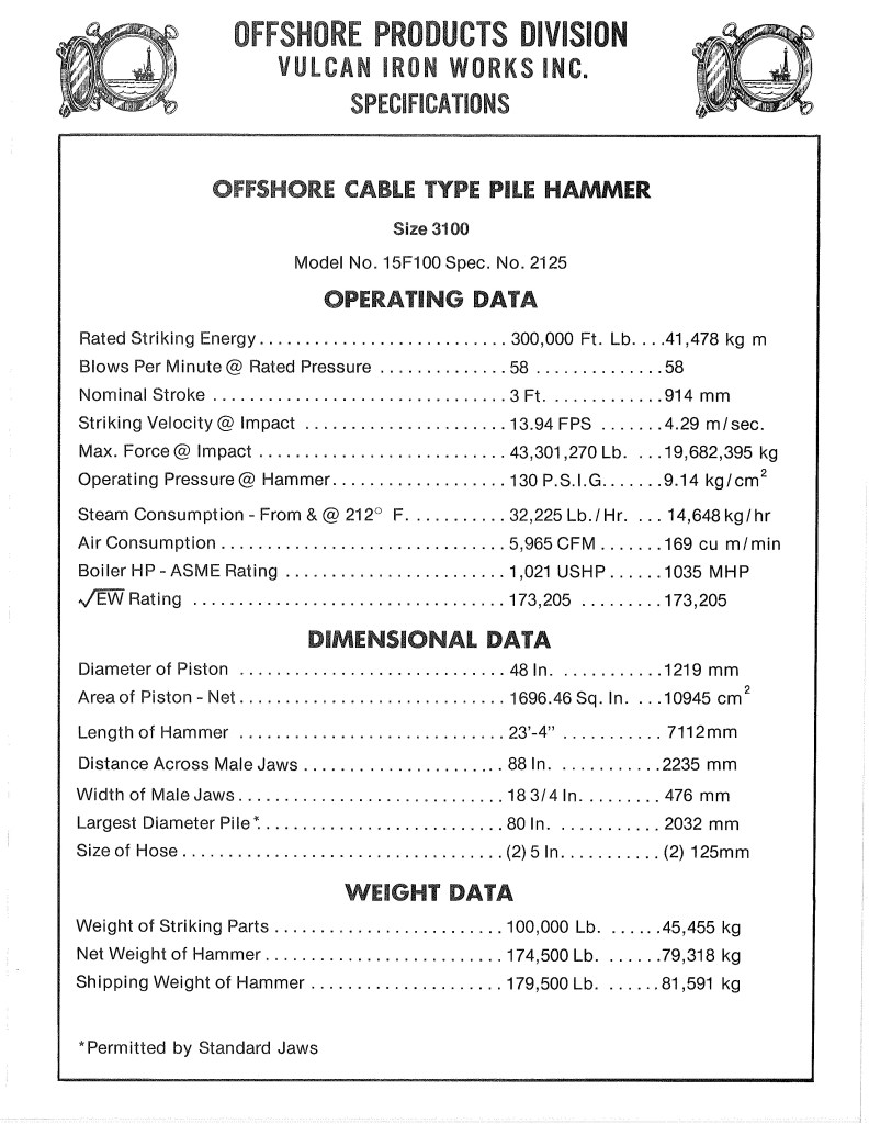 Like the 060 and even more the 040, the 3100 was a major step up for the company. Even though it became the “gateway” to the company’s largest hammers, itself it was a dead end offshore for reasons that weren’t fully appreciated at the time, at least not by Vulcan or some of its end users.