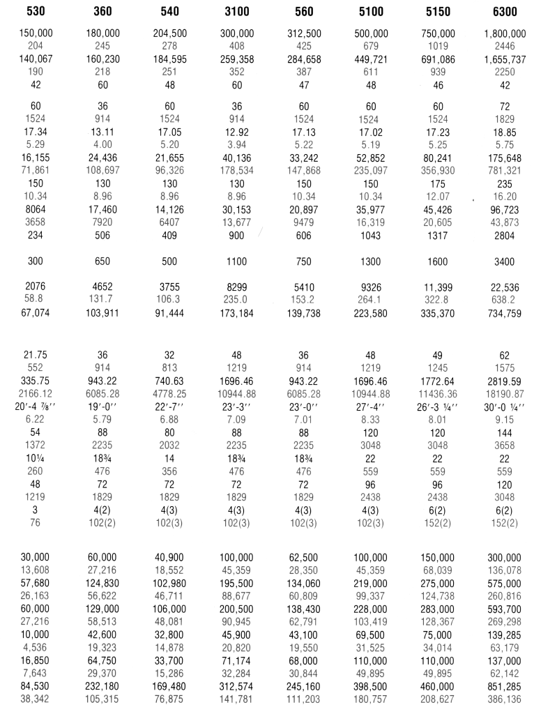 Thus, for a 560 package of 245,160 lbs., using a three sheave/six rope setup like this, and neglecting the weight w, the load to pull up the hammer is 245160/6 = 40,860 lbs. The mechanical advantage of this is clear, and the number of sheaves and ropes is not out of line with what one would see in practice.