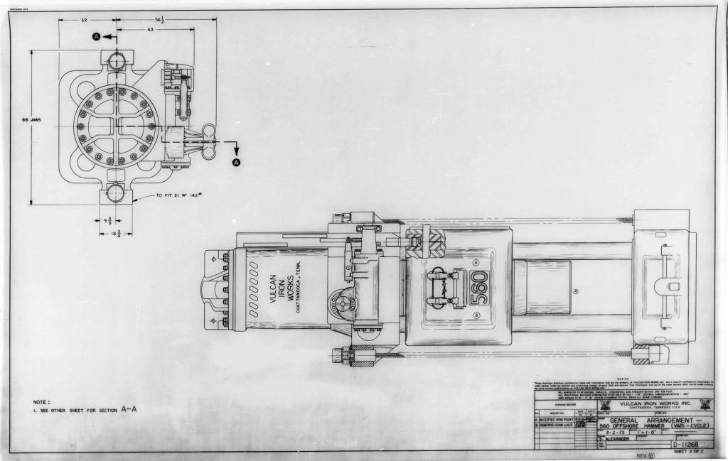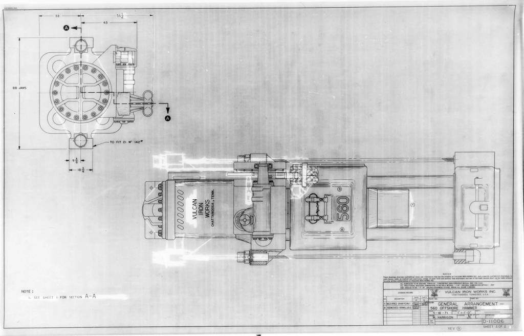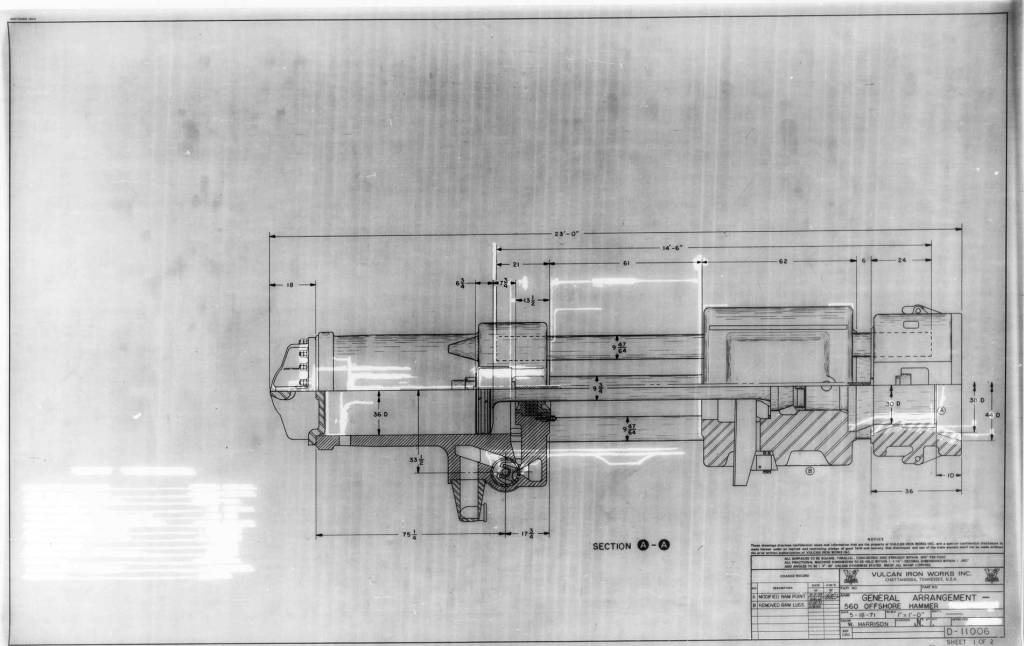 The 560 became the “standard” for offshore hammers, not only for Vulcan’s American customers but for its foreign ones as well, such as Micoperi, ENAP, Petrobras, Hyundai, Daelim, Jardine and of course CNOOC, the sale to which of two (2) 560’s is documented here. It also found onshore use with such customers as Manson Construction.