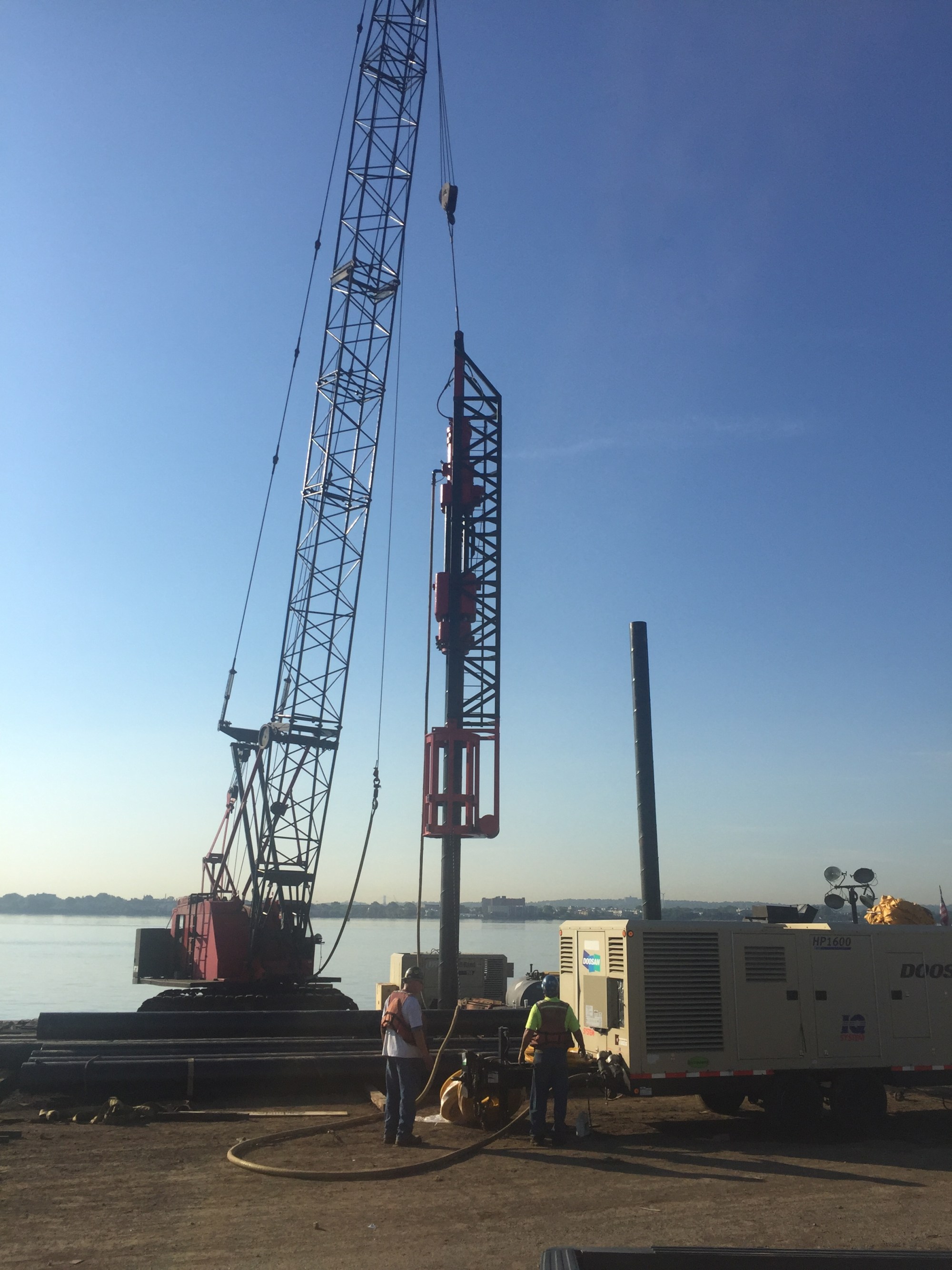 Photo at top: Vulcan hammer getting ready to drive pile on a project for the Port Authority of New York and New Jersey. Photo courtesy of Pile Hammer Equipment.