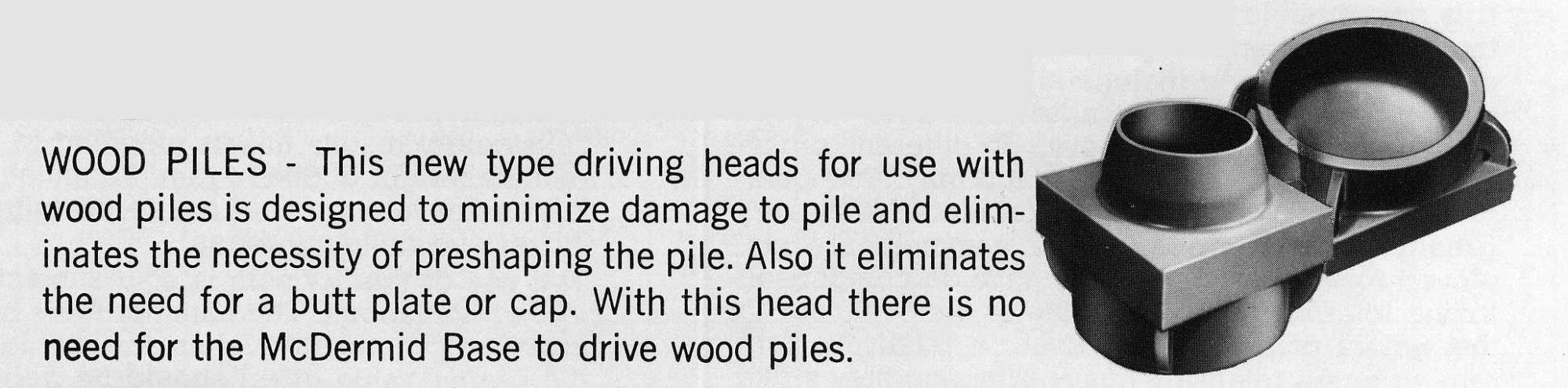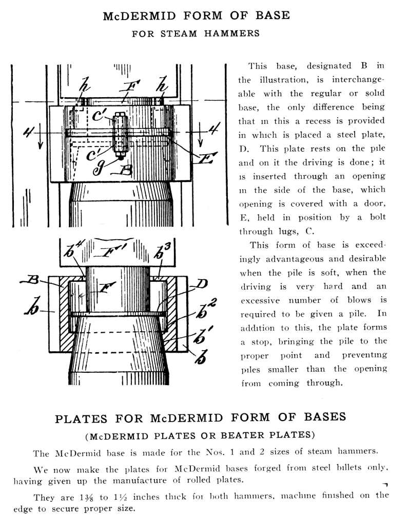 Another option for Vulcan Group “B” and “C” hammers was the McDermid Base, which drives wood piles directly. Information from this can be found below, taken from Vulcan’s 1920 catalogue, produced in the wake of the Spanish Flu pandemic.