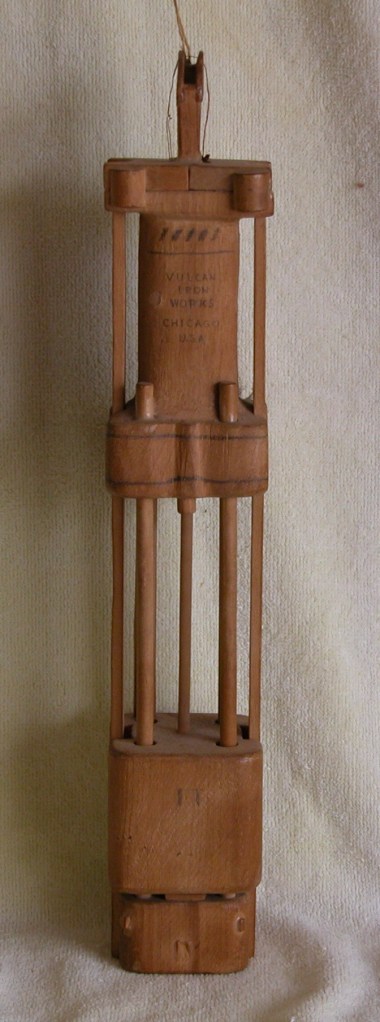 Models of Vulcan hammers–working or otherwise–are rare. This one comes from the Boston area, made by one of the pile drivers who worked the Boston waterfront. It is a real gem; I have not seen one this good in a long time.