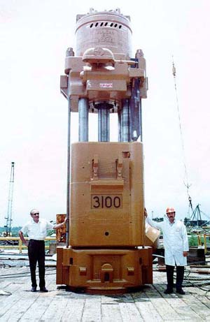 That event began a process that made the 1970’s the era of shortages. Vulcan was caught in the middle by what we would call now “supply chain issues.” It made for a very prosperous period but one Vulcan strained to service. For example, the 3100 hammer, ordered by McDermott, took nearly two years to complete (6-12 months was normal for a Vulcan offshore hammer, depending on the size.) In the midst of production, the inflation of the time (another 1970’s leitmotif) forced Vulcan to go hat in hand to McDermott to increase the price! (Happily, McDermott consented to this.)
