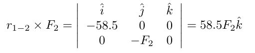 In like manner, the force at point 2 is -F2, and the moment arm is