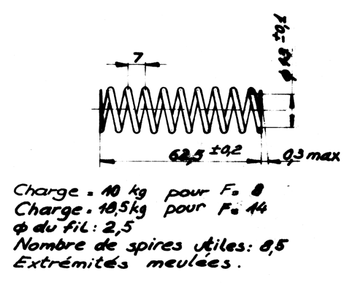 We’ll present two examples of this, both from Vulcan’s diesel hammer efforts (or more accurately those of their partners) and both springs in their fuel pumps. The first is from Vulcan’s Belgian partner in the early 1970’s Nilens, and the spring is shown below.