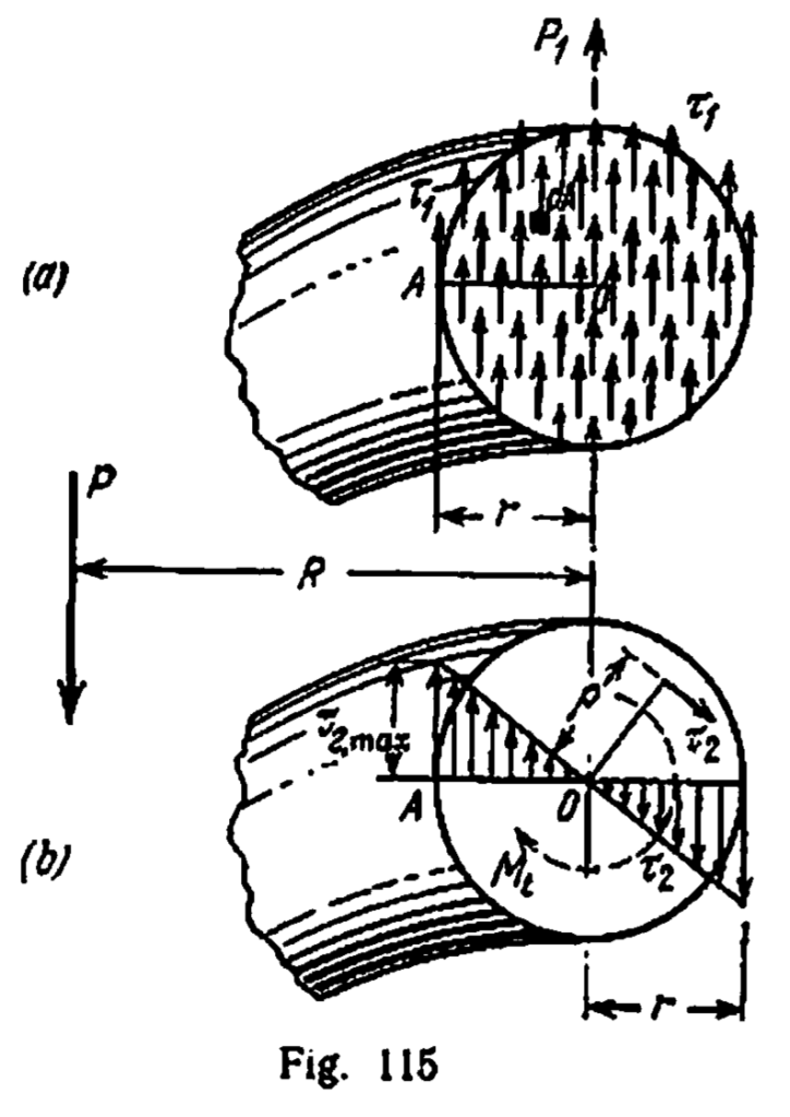 The shear stress is a little more complicated, because frequently formulations of this left out two important factors: the direct shear stress (see Figure 115(a)) and dynamic/stress concentration effects. With neither of these the shear stress is