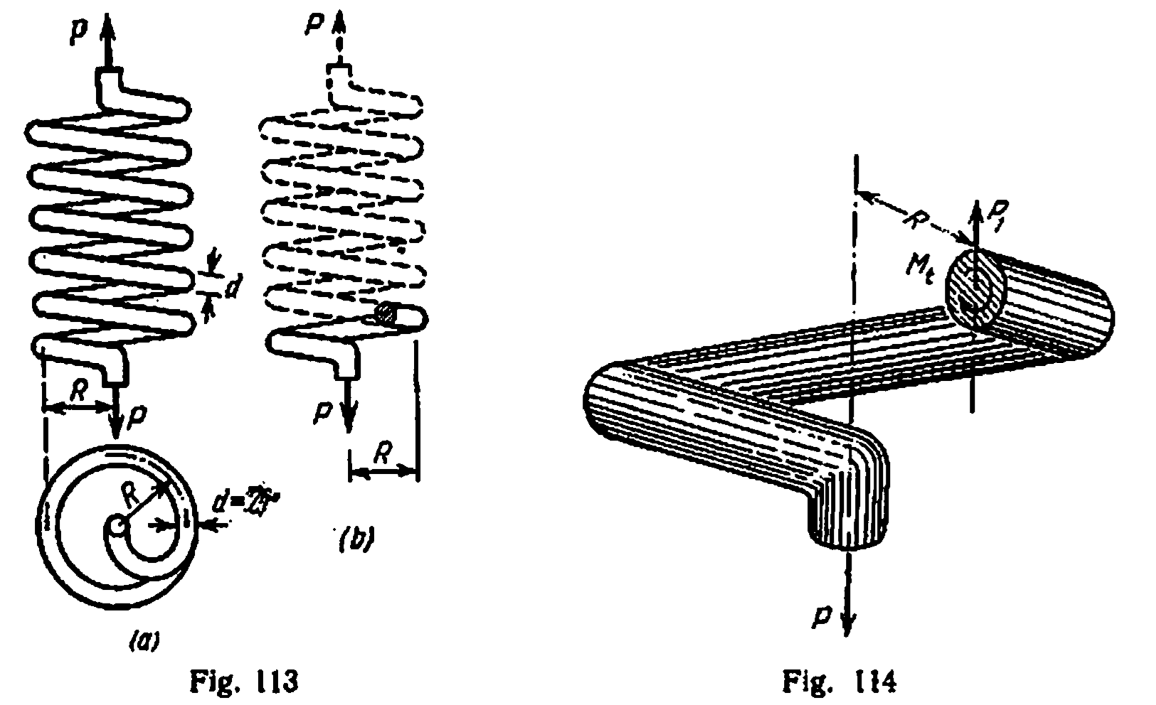 The tension or compression of springs puts the coiled wires into a combination of direct and torsional shear, as shown in Figure 115. There are two things we are looking for in coil spring analysis: the maximum shear stress in the spring, and the spring constant/load at a given deflection of the spring.
