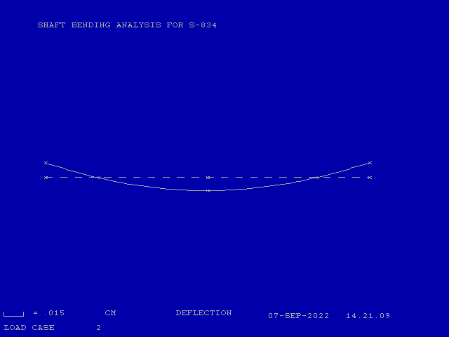 Deflection calculations are significantly more difficult than those of moment, and finite element software is very useful in this case. The maximum deflection in both cases is at the ends/eccentrics, and the combined deflection from CFRAME is (0.03642+0.0152)1/2 = 0.0384 cm, which is larger than those computed by hand. The deflections at the mid-point of the shaft are obviously of interest as well due to the shaft’s interaction with the rotor.