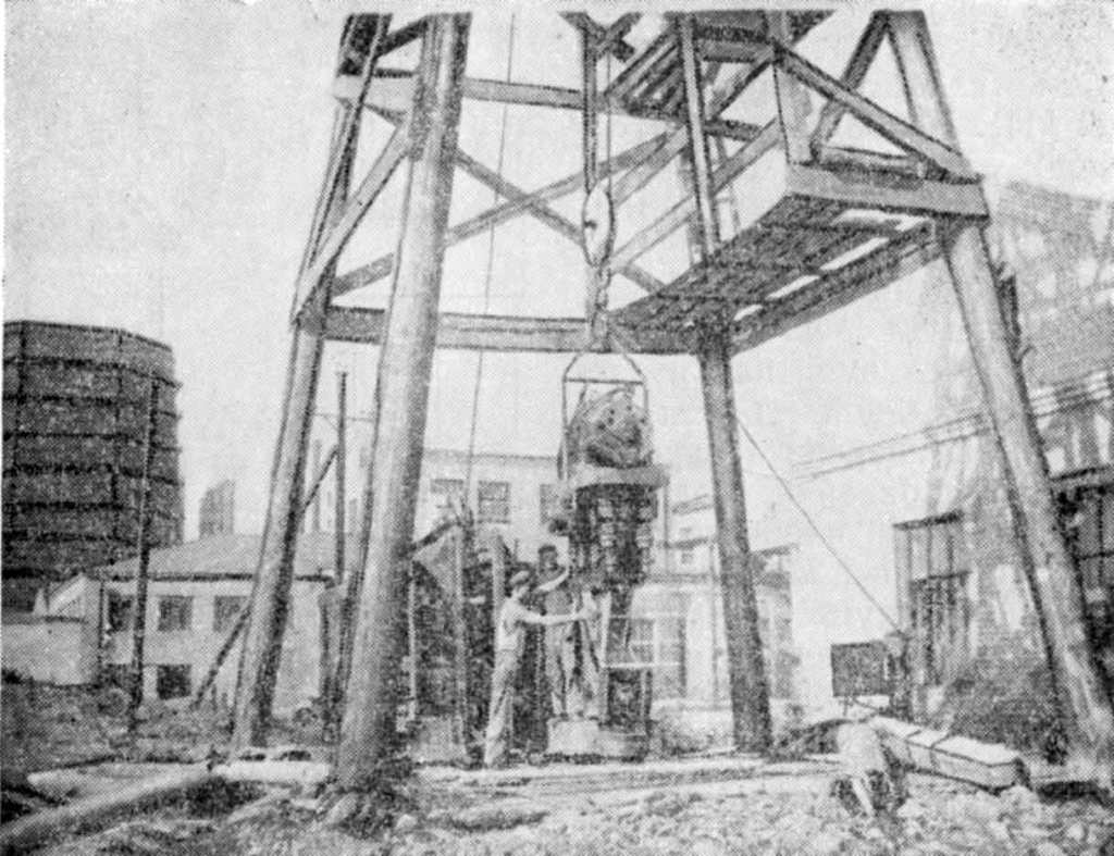 A general view of the drilling rig at the time of planting casing pipes with a vibrating hammer is shown in Fig. 112.