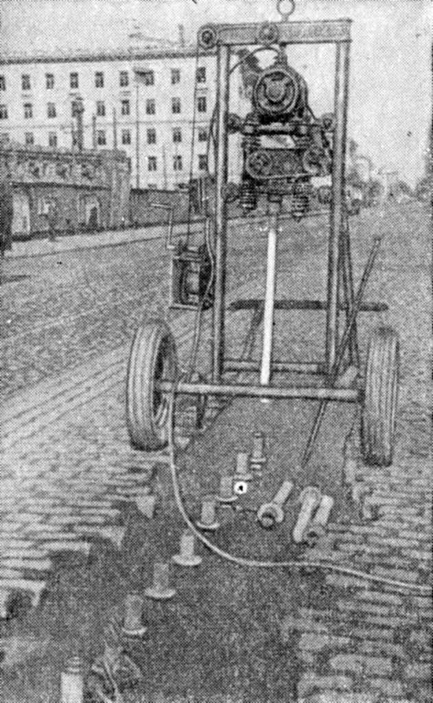 The work was carried out in various areas of Leningrad. The thickness of the frozen soil layer was 0.9-1 m. The duration of one full cycle of work was on average 11.7 minutes, and the immersion of the blank was from 1.25 to 2 minutes. Installation capacity is 40-45 wells per shift.