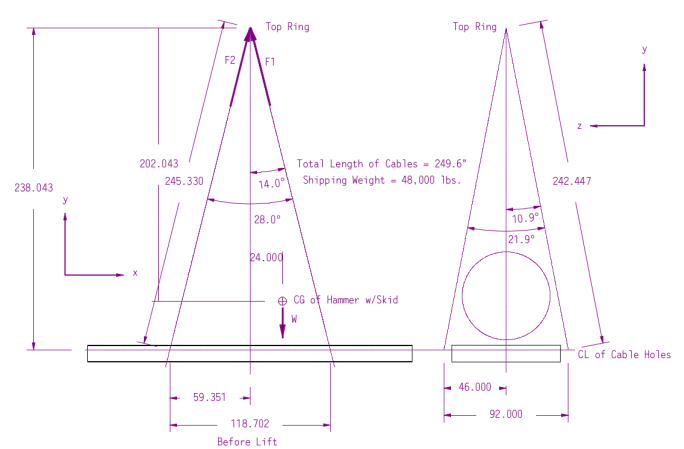 Vulcan’s drawing of the hammer and sling setup is shown below.