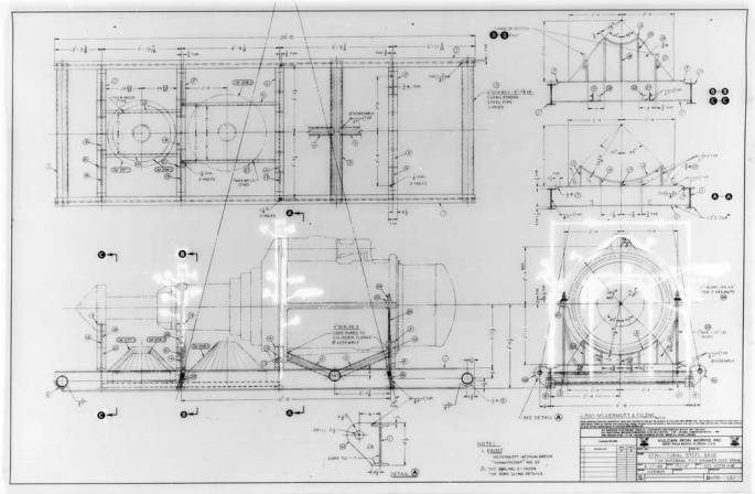A common problem in elementary statics is picking up a load with a sling. It’s an important one in heavy lifting, and Vulcan certainly experienced a great deal of that. We’re going to look at an example: the Internal Pile Hammer IPH-16. It’s shown with its skid on the truck above; we’re going to look at how it got there, and do so in a different way from, say, this problem, where we used straight-up vector statics.
