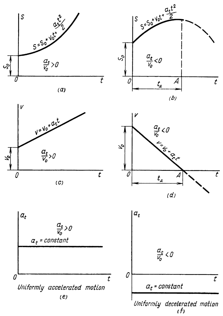 We note that, for uniformly accelerated or decelerated motion, the velocity varies in a linear way with time. For a uniform velocity,