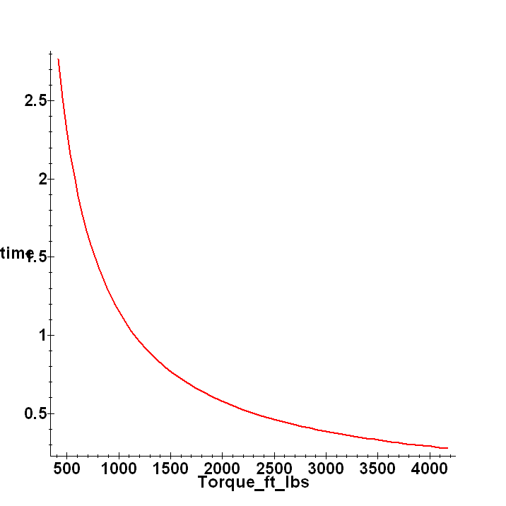 Equation (5) gives us the time to come from rest to a given rotational speed with a given torque and mass moment of inertia. The parameters are as follows: