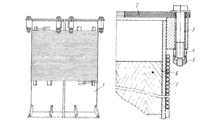 Guide pipe 2 is connected to cylinder 3 with bolts. Anvil 7 is installed in cylinder 3 with the help of upper semirings 6, located at the anvil point, and lower semirings 9, secured in the cylinder with shock absorber ring 8 and bolts. Piston 4 of the diesel hammer is made of a steel forging. The lower end of the piston is spherical with an end groove, which, when in contact with the spherical part of anvil 7 (which also has an end groove), forms a combustion chamber. The piston in the cylinder is sealed with four compression rings. To prevent the piston from jumping out in case of excessive bounce, catch rings are installed on it, which holds the piston in the annular grooves of the catch rings 1.