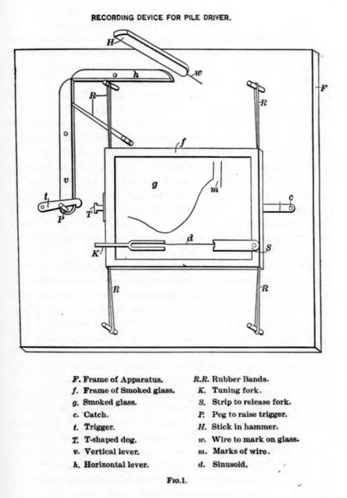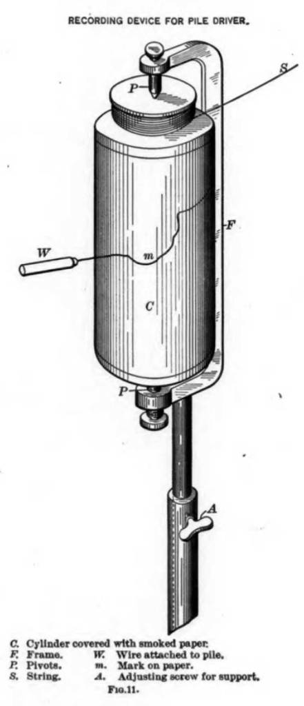The results of the Proctorsville project showed that our understanding of the mechanics of pile driving—and of the load transfer mechanism between pile and soil during and after installation—left a great deal to be desired. The solution to the problem was to instrument the pile driving process. Such an effort was documented in the 1908 paper entitled “The Supporting Power of Piles” by Ernest Goodrich, published in the Transactions of the American Society of Civil Engineers. (An explanation of the term “power” is given in this monograph.) It definitely shows a form of instrumentation, but is it the first?