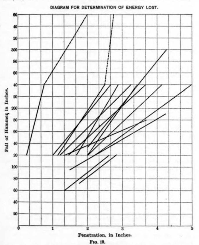 Figure 20 is interesting because it shows that, as the fall of the ram increases, the energy loss as a portion of the “total energy of the fall” (which probably didn’t take frictional losses into account) increases. This might be helpful for “heavy ram/short stroke” supporters but, as is the case with anything else regarding the energy lost in pile driving in this paper, it needs to be read with caution.