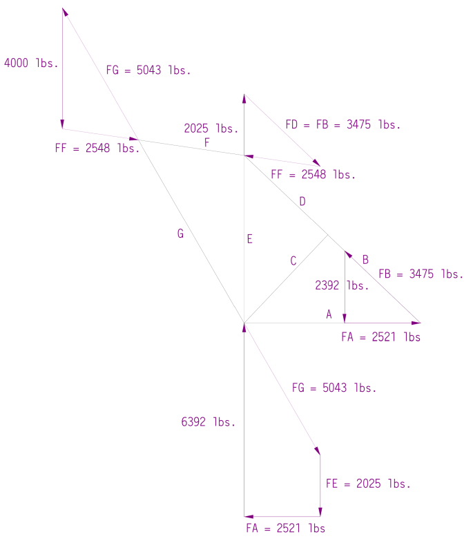 In the post Vector Statics and “Old Coot” Statics: An Example, we showed that the reactions for the stiff leg derrick shown below could be computed using either formal vector analysis or what was called the "old coot" method. In this post the member forces will be computed using the "method of joints" (and by that … Continue reading Stiff Leg Derrick Part II: Truss Analysis