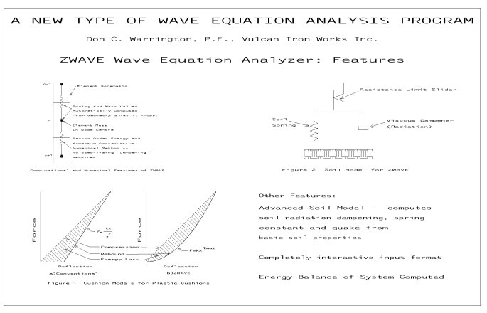 ZWAVE was Vulcan's foray into the wave equation program field. It was an outgrowth of research that dated back to the late 1970's on the magnitude of impact forces of its hammers on pile tops, so as to estimate both the loads on the equipment and the stresses on the piles. The first tangible result … Continue reading ZWAVE