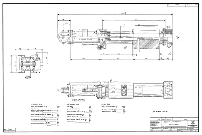 The 010 is one of Vulcan's more popular hammers. For many years it was the largest Warrington-Vulcan hammer in the line until the 012. It was an upgrade from the 0R hammer, raising the ram weight from 9,300 lbs. to 10,000 lbs. Another general arrangement of the 010 with the steam belt are shown below. … Continue reading Vulcan 010 Hammer: Specifications and Information
