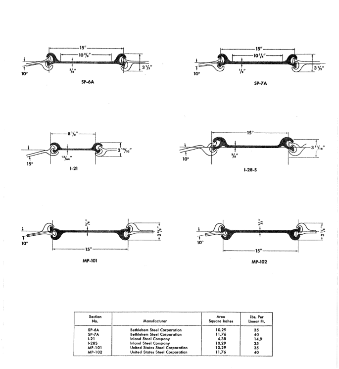 Above are some historical flat sheeting profiles, including the following: SP-6A and SP-7A (Bethlehem Steel) I-21 and I-28S (Inland Steel) MP-101 and MP-102 (U.S. Steel) Many engineers are looking for properties of these sheets (such as moment of inertia and section modulus) that Vulcan didn't have much interest in. In the 1970's, the sheet pile … Continue reading Historical Flat Sheet Profiles