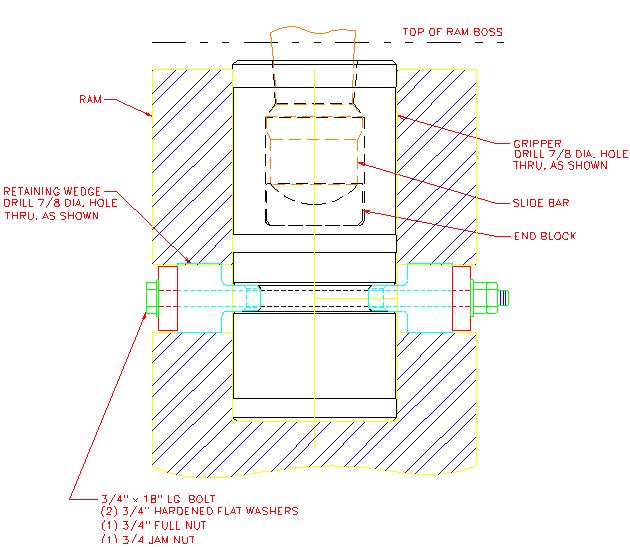 Many Vulcan hammer users have expressed interest in a method other than the pipe plug retainers to keep the slide bar gripper wedges in place on Vulcan's largest hammers. Above such a method is shown; the pipe plugs being removed and the bolt and nut arrangement installed as shown above. For users of metric parts, … Continue reading Vulcan Offshore Tip #25: Slide Bar Gripper Modification