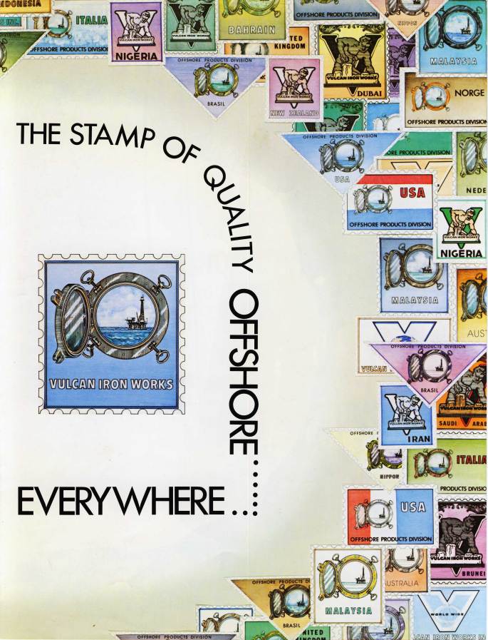 Vulcan frequently produced an ad for the Offshore Technology Conference. Probably the best one was the "Stamp Ad." The "stamp of quality" theme had appeared in Vulcan's literature for many years before that, but Vulcan's graphic artist Carol Carr took it to a new level with this one in the early 1970's. It was unusual … Continue reading The Stamp of Quality…Everywhere